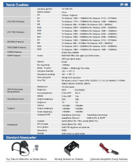IP-58, internet destekli 2G, 3G ve 4G altyapıları üzerinden çalışabilir.